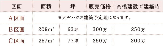 高橋建設で建築の方は、BC区画の販売価格から50万円お安くなります。